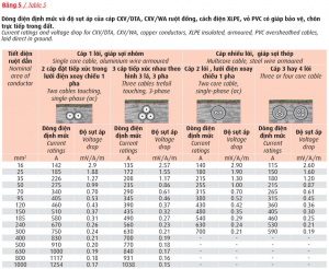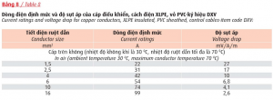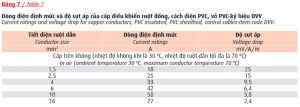 Ghi chú: Bảng 7 và 8 áp dụng tương đương cho cáp điều khiển có màn chắn chống nhiễu.