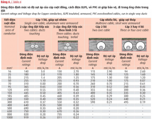 Với mạch 1 pha 220V độ sụt áp cho phép 5,5V.