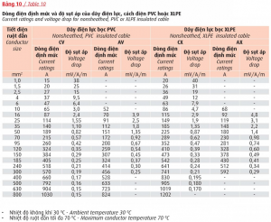 | Khi sụt áp lớn hơn mức cho phép thì khách hàng phải chọn cáp có tiết diện ruột dẫn lớn hơn.