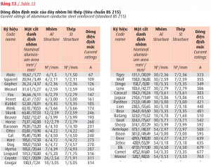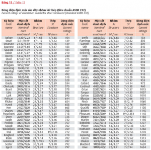 Xem bảng 1, cột 2, 3, 4 lõi.